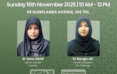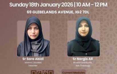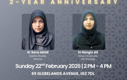 *FOURTEEN* Sisters’ Study Circle Islamic Studies Monthly Sessions *Sr Nargis Ali:* Howza Graduate, MA Theology *Sr Sara Abidi:* Islamic Studies Teacher *Date:* Sunday 22 February 2026 *Time:* 10 AM – 12 PM *Venue:* 69 GLEBELANDS AVENUE IG2 7DL Fee: £3 PER SESSION *Refreshments Will Be Served* *Donations:* FOURTEEN 34443165 23-05-80 *To register contact:* Sr Shehwar …